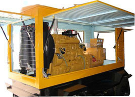 古塔柴油发电机组/移动柴油发电机组设计独具创新,机动性高、重心低、制动安全、制造精良、外形美观。 古塔拖车车架采用槽梁焊接成框架结构,节点选择合理、强度高、刚性好;同时装有钢板弹簧悬架结构;拖车采用高度可调节插销式牵引架,适用于各种高度牵引车;采用圆形钢管焊接直通式车轴,结构紧凑,安全可靠;车架四角设有机械式支撑装置,配备惯性行车制动、驻车制动和脱离应急制动,确保机组在各种状况下的安全;车架前端设有支撑轮,具备承受机组垂直载荷的功能的同时还具备导向功能;整车配备转向和刹车指示灯,同时装有尾灯标准插头